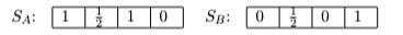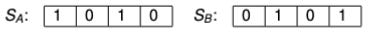 Notice that A is better than B at loci 1 and 3, while B is better than A at loci 2 and 4. We can represent this as follows, giving a 1 or a 0 to the winner or loser at each locus.